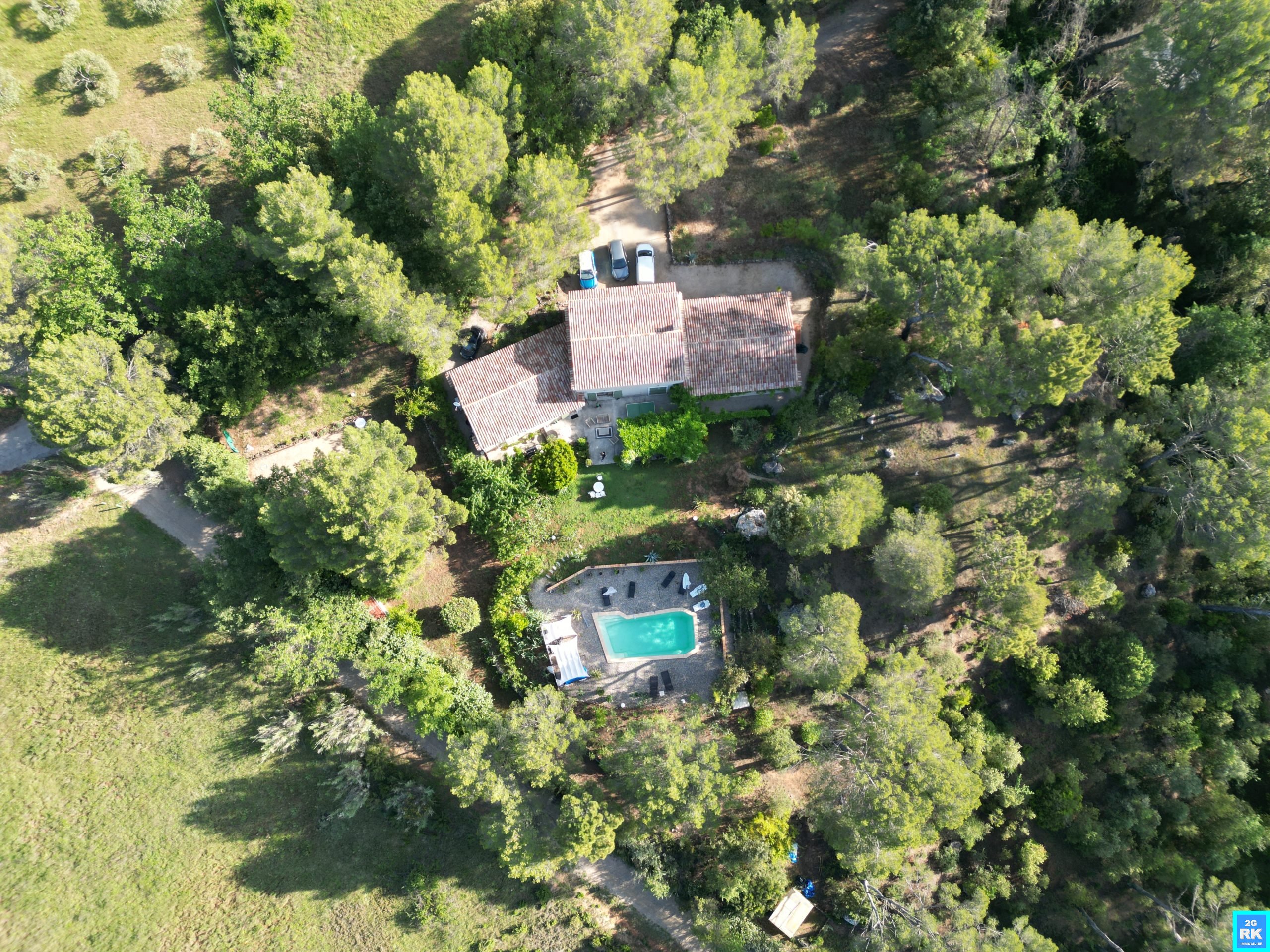 Exclusivité. Belle Villa d’architecte 280 m², piscine, campagne. Proche Villecroze, Var, belle propriété de charme sans vis à vis située dans un quartier campagne préservé (voisinage composé de quelques propriétés) au calme sur un terrain de 9 100 m² joliment arboré d’essences méditerranéennes et d’une piscine avec plage. Villa est de bonne construction traditionnelle sur plus de 250 m². La maison est composée d’un porche d’accueil, hall d’entrée avec vestiaire et toilettes, grand séjour – salon 70 m² ( possibilité d’une cheminée) avec hauteur sous plafond et ouvrant sur terrasse, mezzanine bureau et salle de billard aménageable. Grande cuisine provençale 30 m² ouverte sur séjour par verrière. partie nuit disposant de quatre chambres spacieuses dont une avec salle d’eau privative, une salle de bains et une salle d’eau.